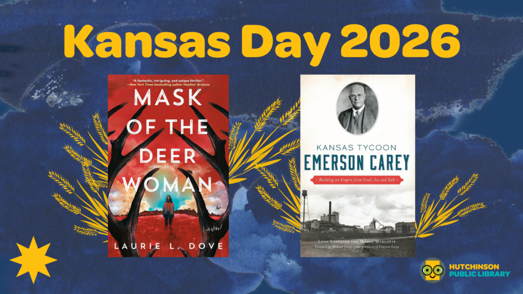 In addition to our new virtual author talk program, we have two local authors visiting in person to celebrate Kansas Day at the library! Meet USA Today best selling author Laurie L. Dove as she discusses her debut novel, Mask of the Deer Woman. Then catch up on local history with Myron Marcotte as he recounts his experience writing about the life of Emerson Carey and the Hutchinson Salt empire.