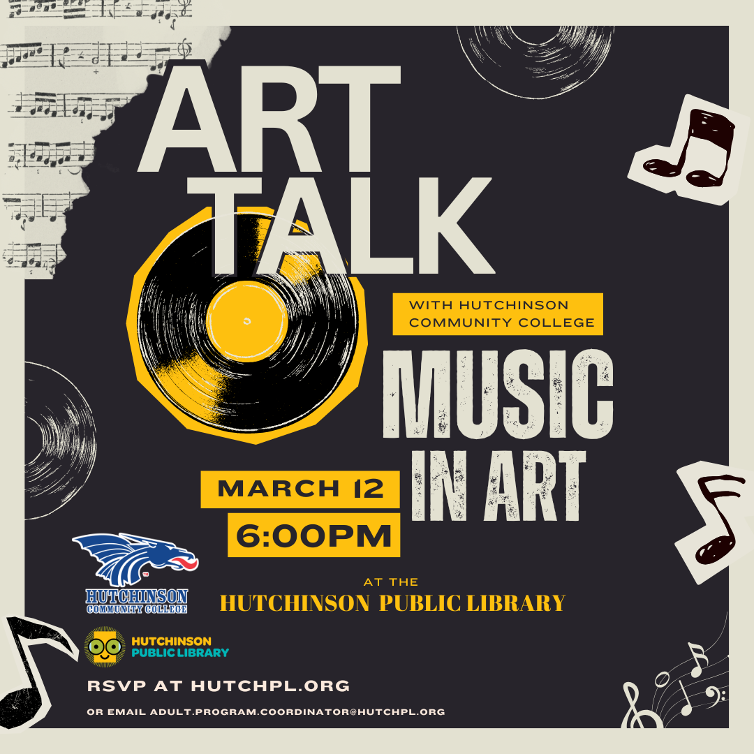 Join us for an Art Talk with Kim Ivancovich from Hutchinson Community College, where we’ll explore how music inspires art and vice versa. Talk about your favorite album covers of music themed artwork with us.