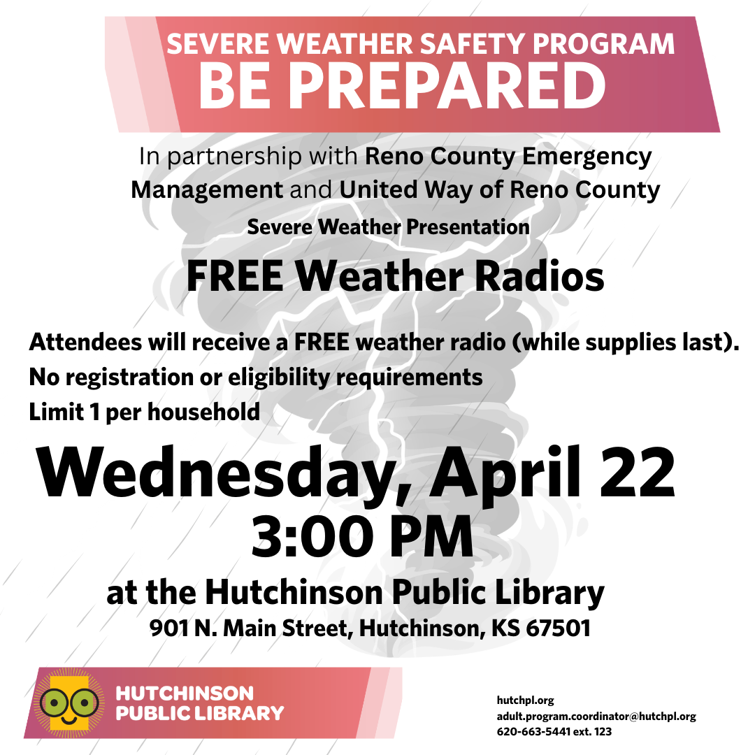 Severe Weather Presentation Attendees will receive a FREE weather radio (while supplies last). In partnership with Reno County Emergency Management and United Way of Reno County. What You’ll Learn: How severe weather warnings work What to do during tornadoes, floods, and severe storms How to create a simple emergency plan Where to get trusted local […]