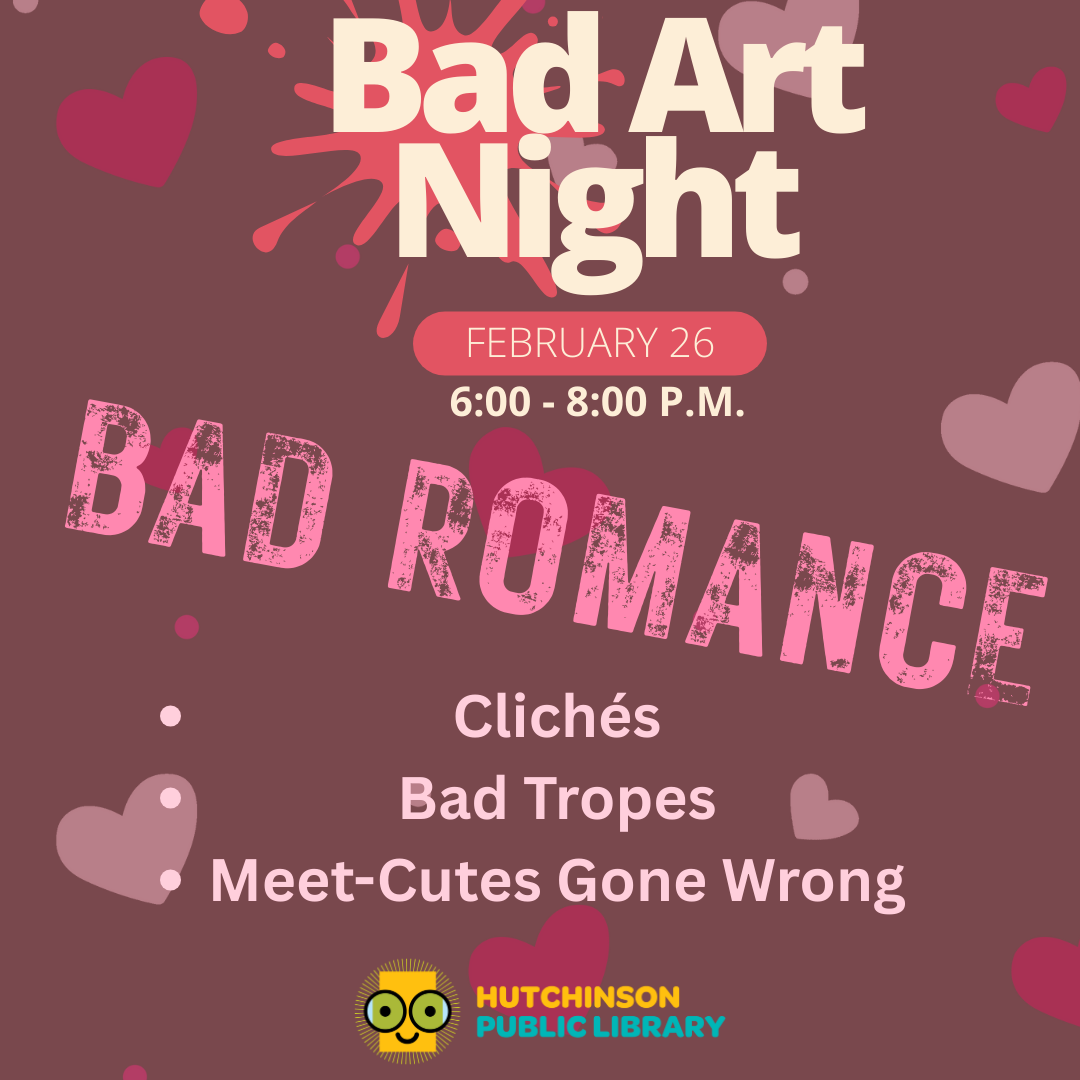 Bad Romance February 26th at 6:00 PM Create a a terrible romance book cover with bad tropes, unfortunate first meetings, and romantic disasters. This bad art night is a little […]