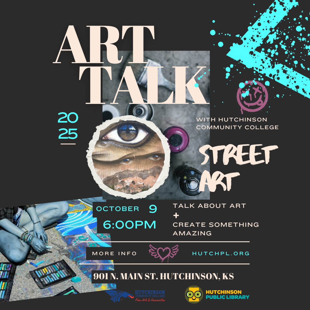 Join us for an exciting evening of art, history, and creativity at Art Talk, a special collaboration between the Hutchinson Public Library and Hutchinson Community College. Professor Kim Ivancovich will kick off the evening with a dynamic and engaging presentation on the history and origins of street art—exploring its cultural impact, artistic evolution, and the […]
