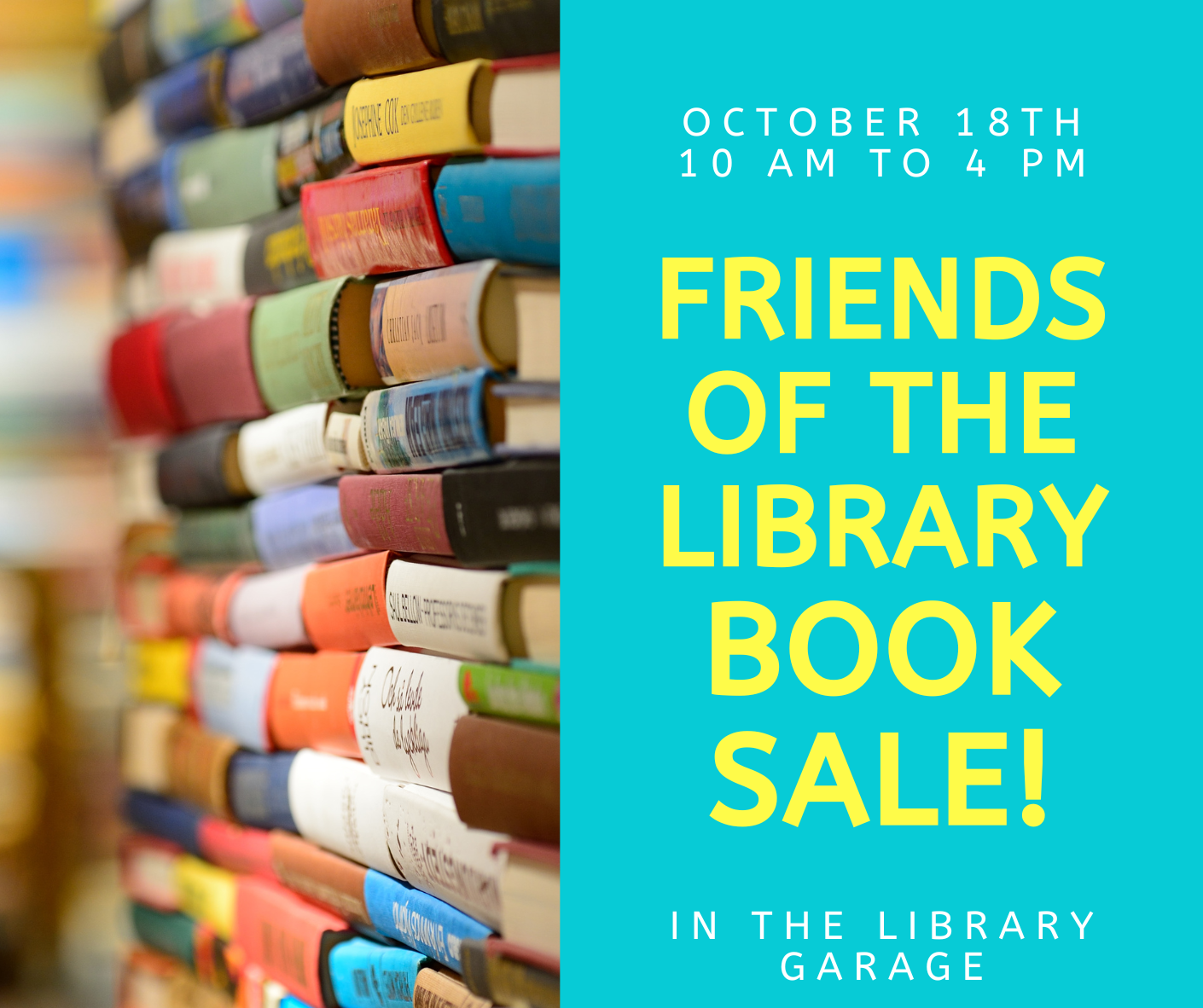 Join us in the library garage on Saturday, October 18, for a book bargain bonanza with the Friends of the Library Big Book Sale! From 10 AM to 4 PM, you can shop thousands of books and audiobooks for all ages. Bring your own bags and boxes for the treasures you'll find. Items will be priced as […]