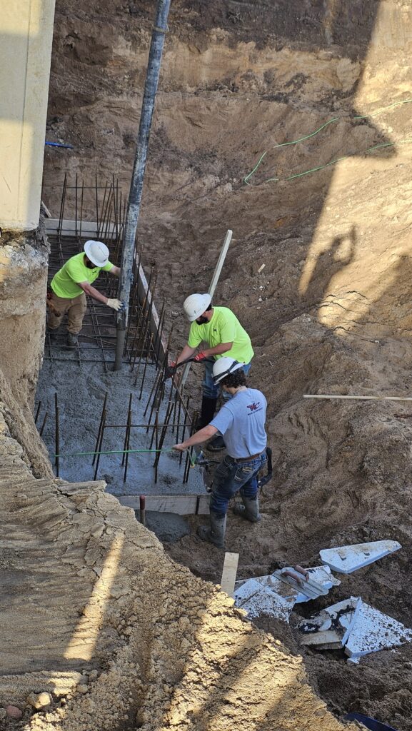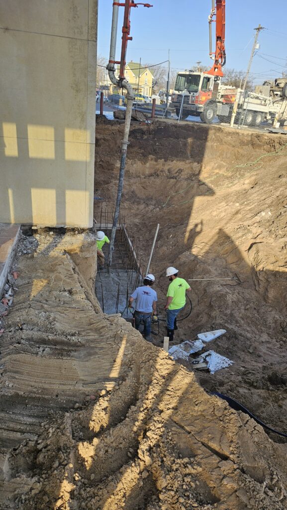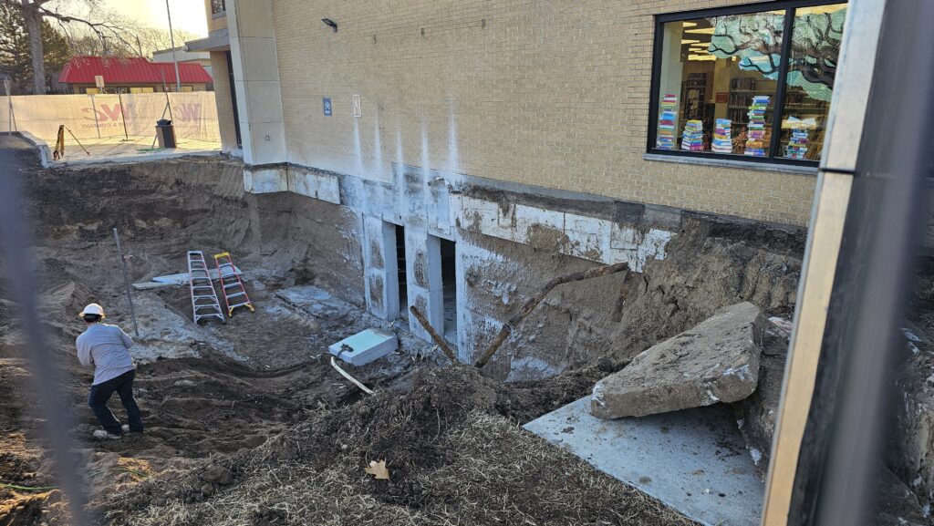 March 6th – Pouring the footings and floor of the new basement emergency exit on the north side of the building.