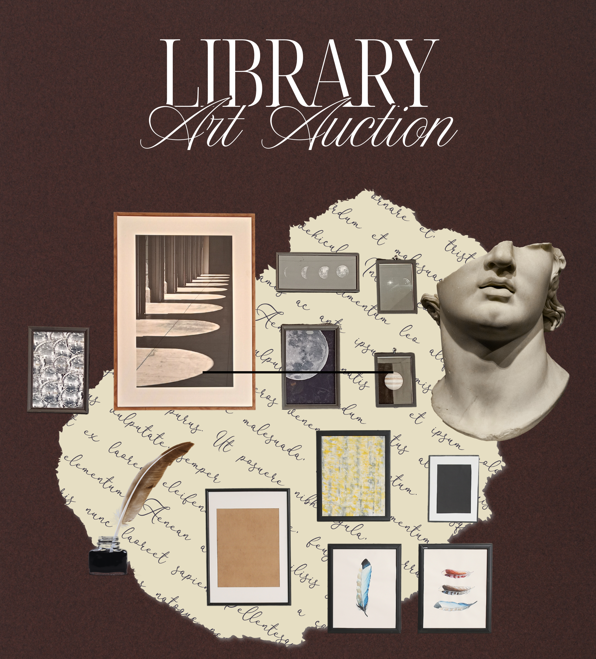 The auction will be held on the first floor of the Library beneath the mezzanine. Artwork may be viewed for two weeks before the auction and on the Library’s website. Light refreshments will be served.