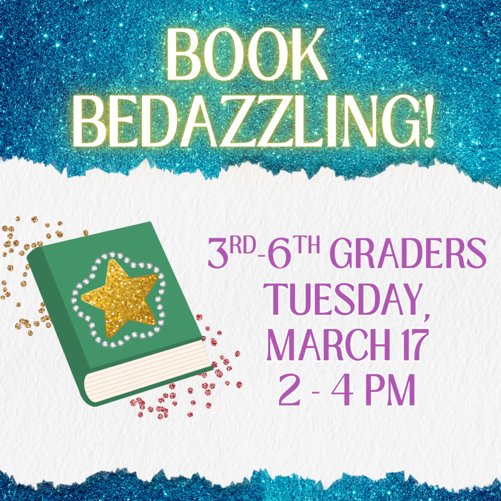 What’s better than a good book? A good book with a little sparkle! We’ll use the diamond art technique to create a sparkling book cover using rhinestones and glue. There will be a variety of books to choose from, or you can bring your own from home to bedazzle. Registration is required!